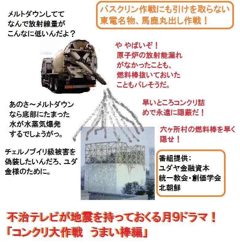 時間がないユダ金連中、えーいもう面倒だ、コンクリ作戦だあ。 |