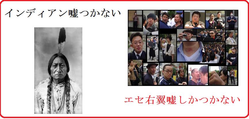 写真に写る、ネイティブ・アメリカンの方と、エセ右翼と言われる方々の対比。 |