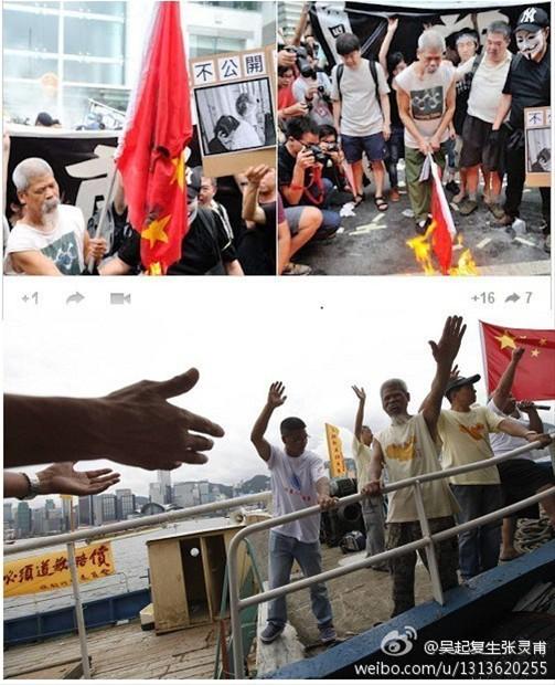 ついに、髭が中国国旗を燃やしていたことが、テレビで放送された。 |