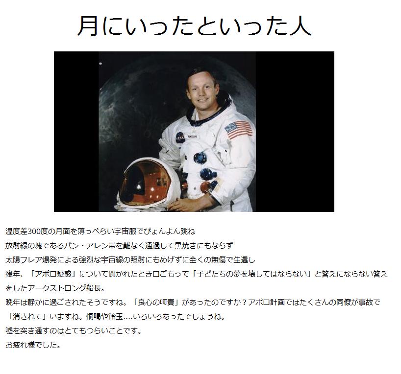 世界的に月面着陸が嘘だとバレてきたので口封じでしょうね。朝鮮カルト肛裂く員の末路でもありますね。 |
